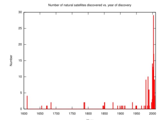 عدد ألأقمار المكتشفة في كل عام